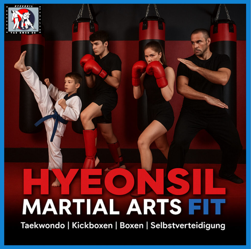☀️ SOMMERANGEBOT bei Hyeonsil Martial Arts FIT **Kampfsport & Kampfkunst, die begeistert – für die ganze Familie!** 🥋 *Taekwondo* | 🥊 *Kickboxen* | 👊🏽 *Selbstverteidigung*